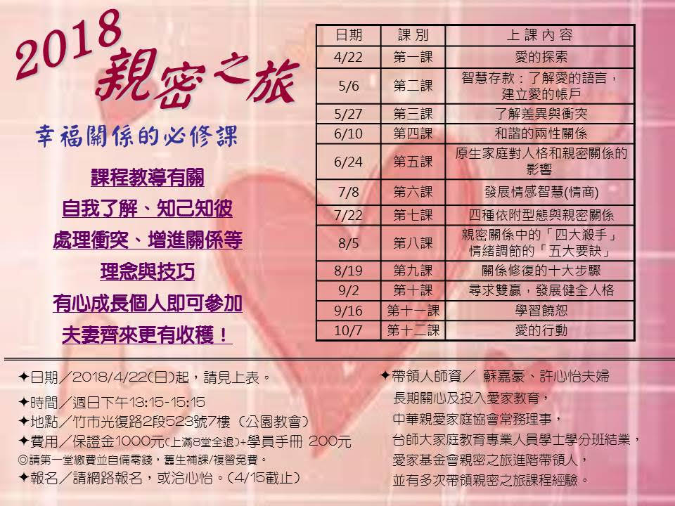 日期:2018.4.22(日)13:15起,共12週,地點:公園教會七樓