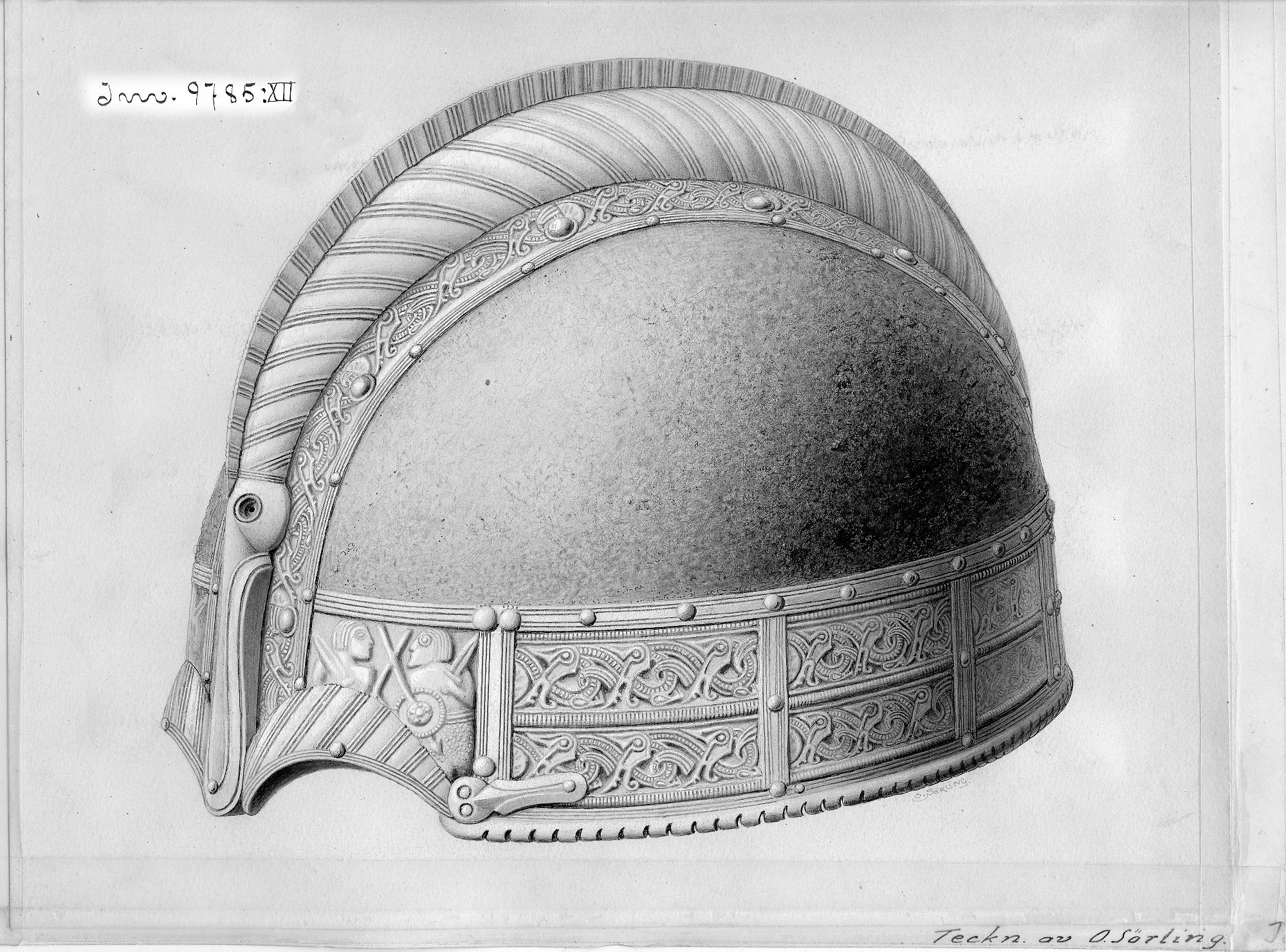 Anonymous – Drawing of the Vendel XII helmet. Statens historiska museum(Creative Commons Attribution 2.5 Generic license., Wikimedia Commons)