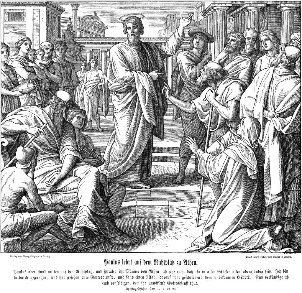 Julius Schnorr von Carolsfeld – Paul at the Areopagus(before 1872)Die Bibel in Bildern / von Julius Schnorr von Carolsfeld(Public Domain, Pitts Theology Library, Candler School of Theology, Emory University)