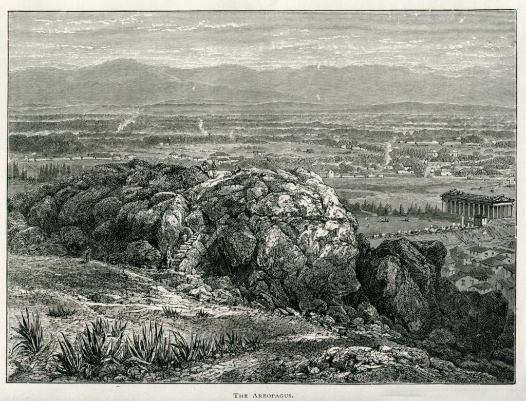 Hamerton, R.J. – AREOPAGUS ROCK FROM WHICH ST. PAUL PREACHED TO THE ATHENIANS.(1841)Damer, Mrs. G.L. Dawson. “Diary of A Tour in Greece, Turkey, Egypt, and The Holy Land, Volume 1.” (Henry Colburn, London: 1841). p 032b.(Creative Commons Attribution-Share Alike 2.5 Generic license., Wikimedia Commons)