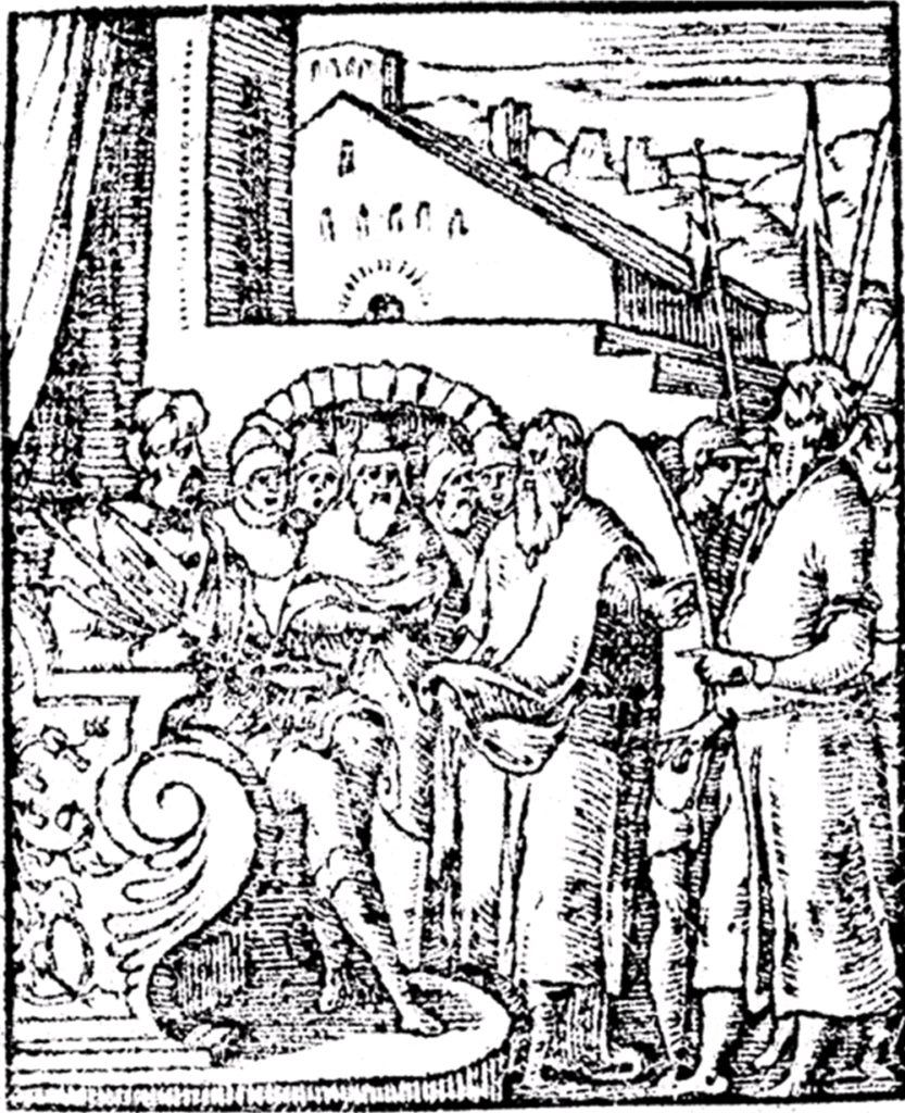 Christoffel van Sichem II and his son Christoffel van Sichem III – Paul Before the Council(before 1658)Het Nieuwe Testament ons salichmaeckers Iesv Christi, mitsgaders d’epistelen : wt het Oude Testament, soo die door ‘t jaer in den dienst der h. kercke ghelesen worden.(Public Domain, Pitts Theology Library, Candler School of Theology, Emory University)
