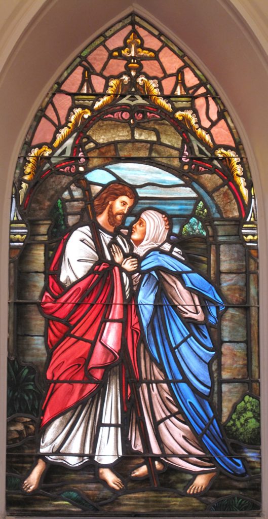 The Jesus Heals a Leper window at St. Matthew’s Lutheran Church in Charleston, South Carolina. Attributed to the Quaker City Glass Company of Philadelphia, 1912.(Creative Commons Attribution-Share Alike 3.0 Unported license. by Cadetgray Wikimedia Commons)