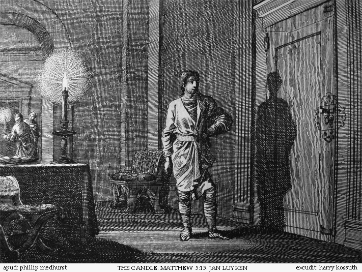 Phillip Medhurst – An etching by Jan Luyken illustrating Matthew 5:15 in the Bowyer Bible, Bolton, England.(2009)(Free Art License, Wikimedia Commons)