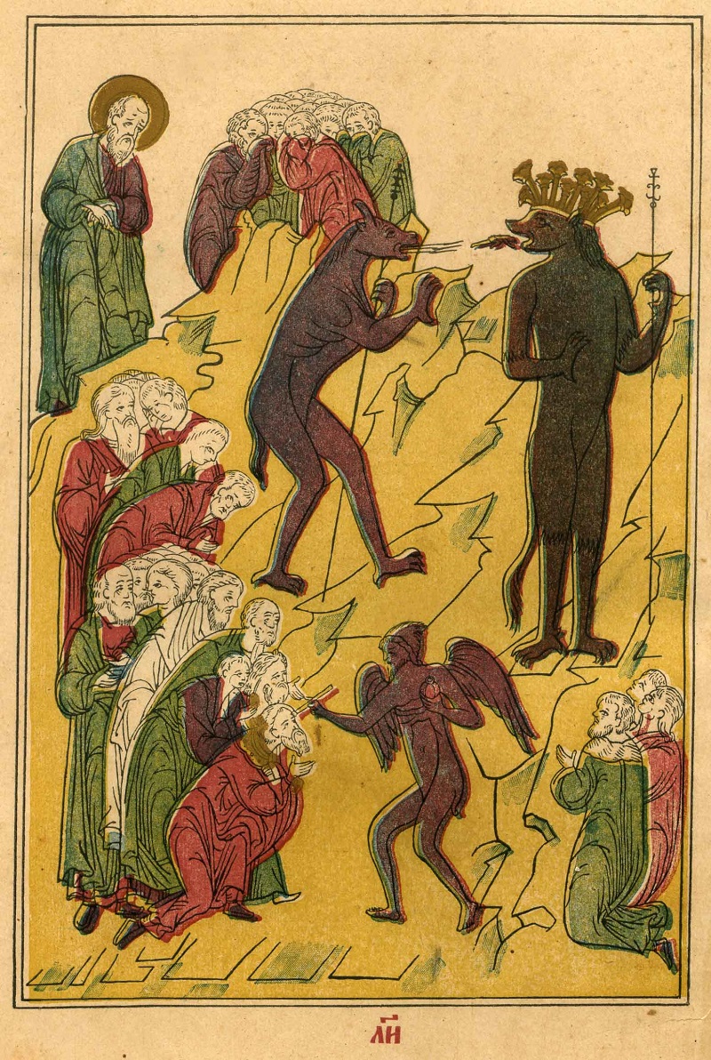 Миниатюра из книги «Апокалипсис трехтолковый». Московская старообрядческая книгопечатня 1909 г., с древлеписьменной рукописи первой половины XVII в.(Public Domain, Wikimedia Commons)