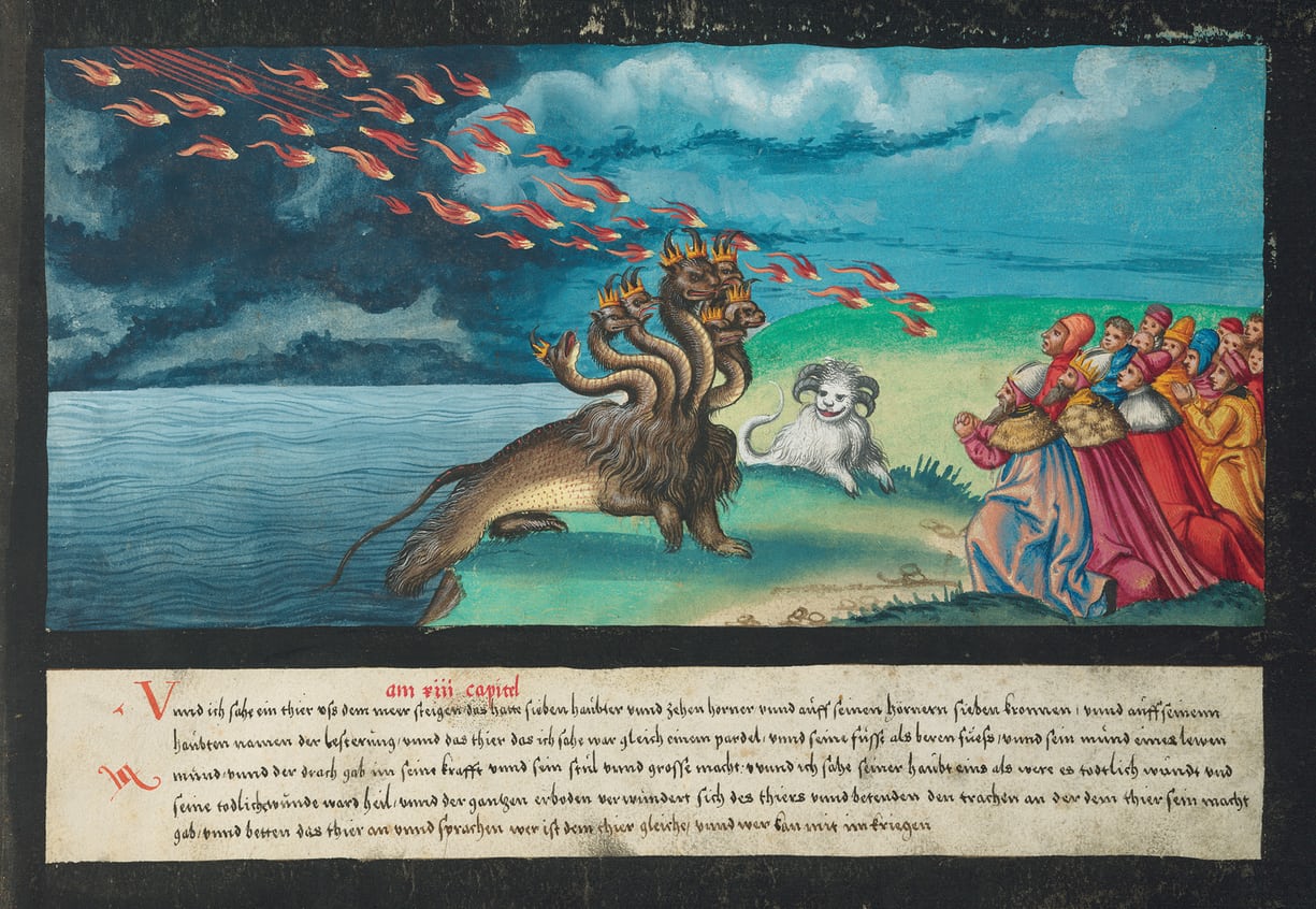 Jean Duvet: The Beast with Seven Heads and Ten Horns, from the Apocalypse(before 1561)Metropolitan Museum of Art(Creative Commons CC0 1.0 Universal Public Domain Dedication, Wikimedia Commons)