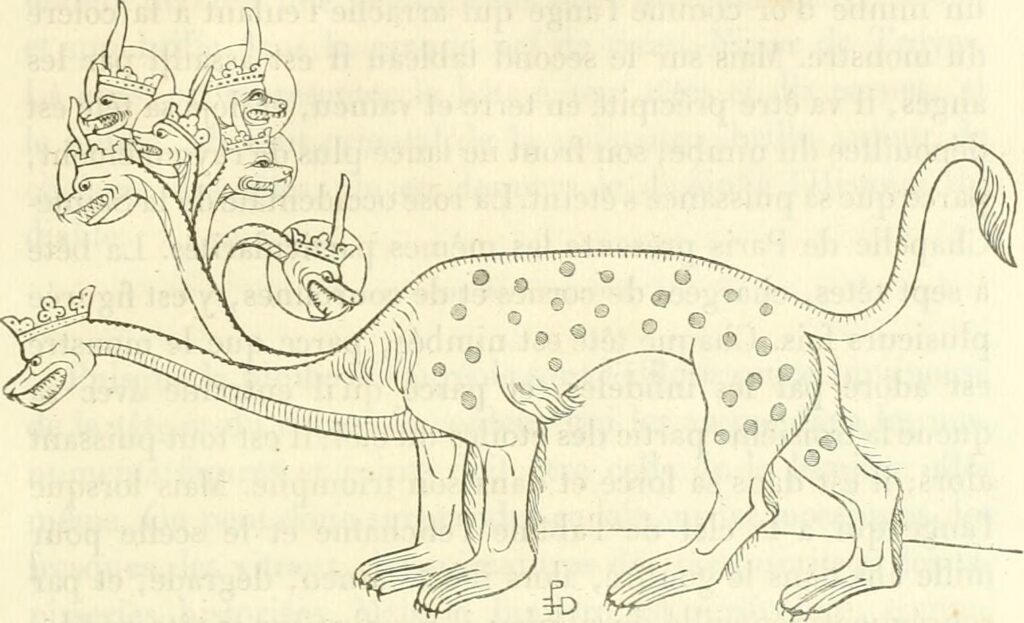 Anonymous – The Seven-headed Beast of the Apocalypse Venerated by a Hypocrite and Crushing a Saint, from ‘La Somme le Roy’ by Frere Laurent,(1311)Bibliothèque de l’Arsenal, Ms-6329 réserve(Public Domain, Wikimedia Commons)