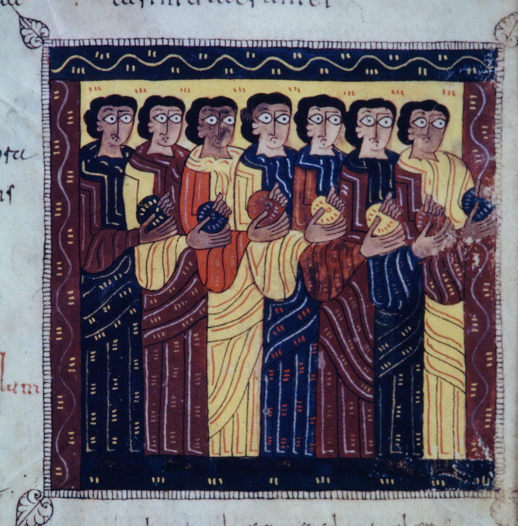 Stephanus Garsia (and other unnamed) – Saint-Sever Beatus f. 177r – Seven bowls(11th century)(Public Domain, Wikimedia Commons)
