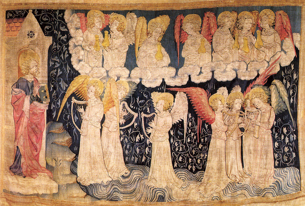 Château d’Angers; Angers; Pays de la Loire, Maine-et-Loire; France; Tenture de l’Apocalypse; no 57, Les anges reçoivent leur flacon; Cultural heritage(Creative Commons Attribution-Share Alike 4.0 International license., Wikimedia Commons)