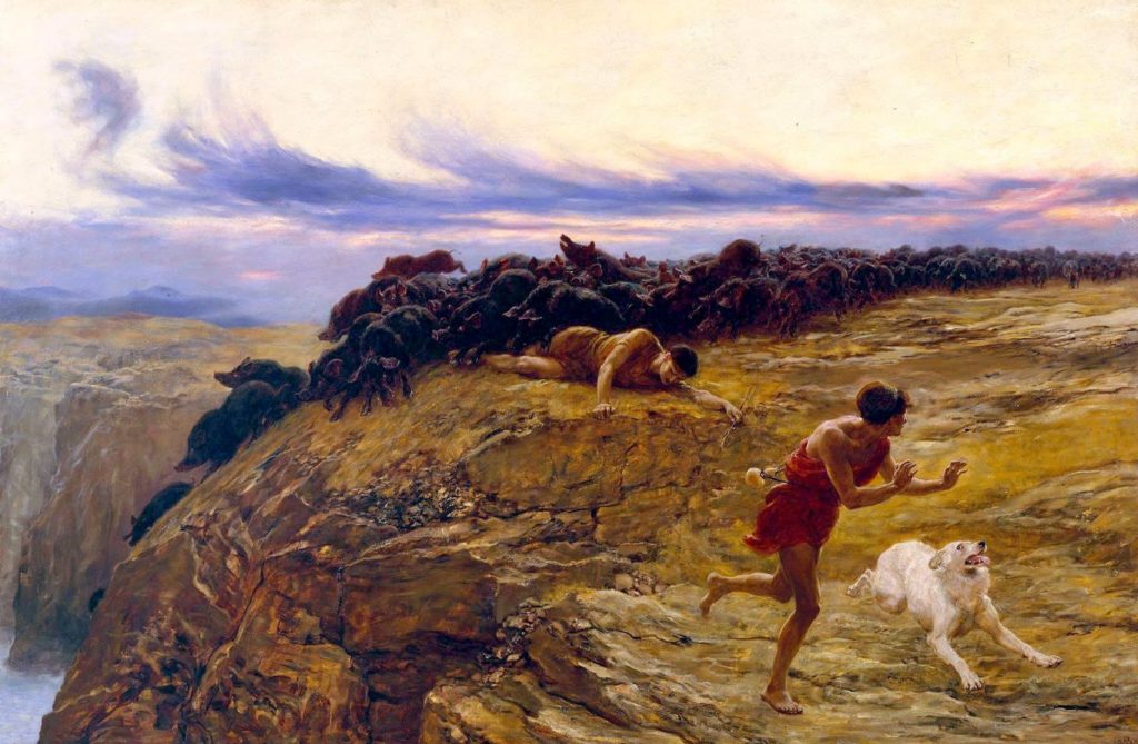 Briton Riviere – Miracle of the Gadarene Swine(1883)(Public Domain, WikiArt)