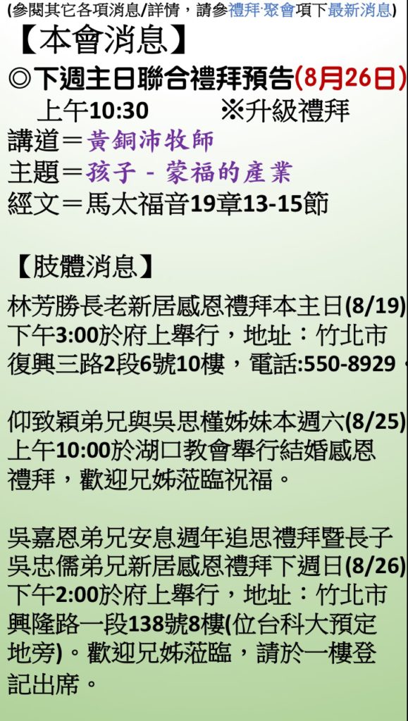 證道:黃銅沛牧師