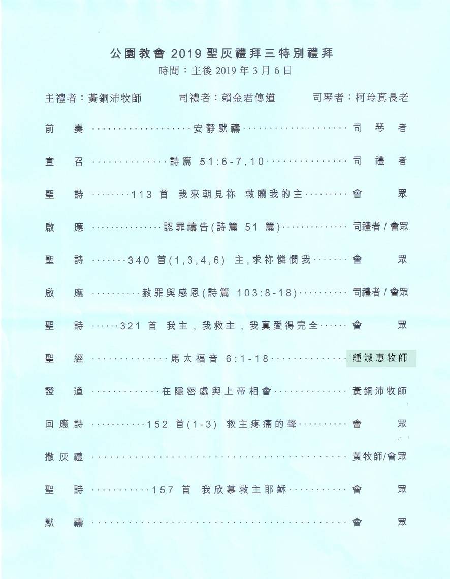 朗讀聖經:鍾淑惠牧師