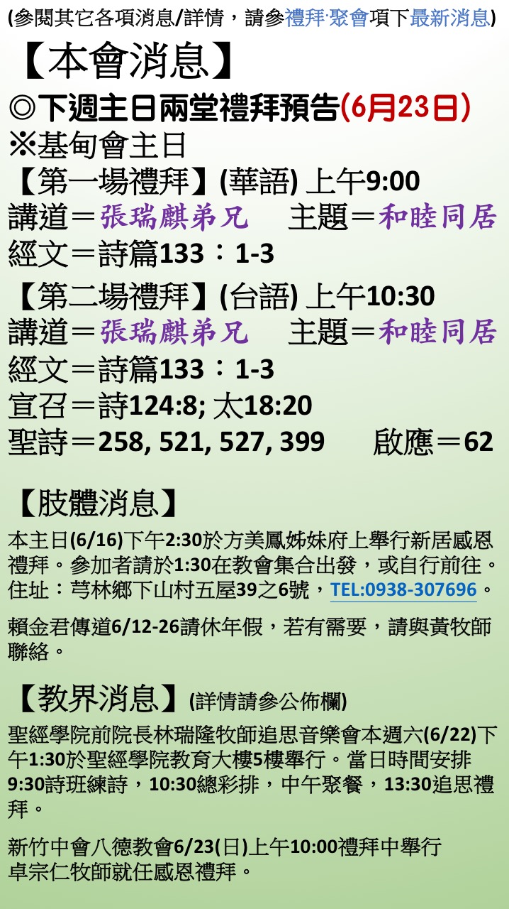 證道:黃銅沛牧師