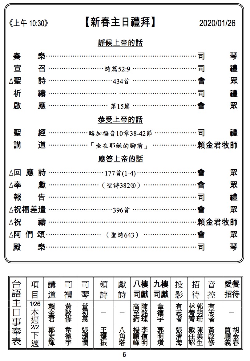 Posted on 2020 1 月 26, 證道: 賴金君牧師