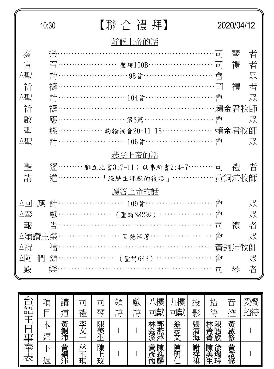 禮拜全程錄影: