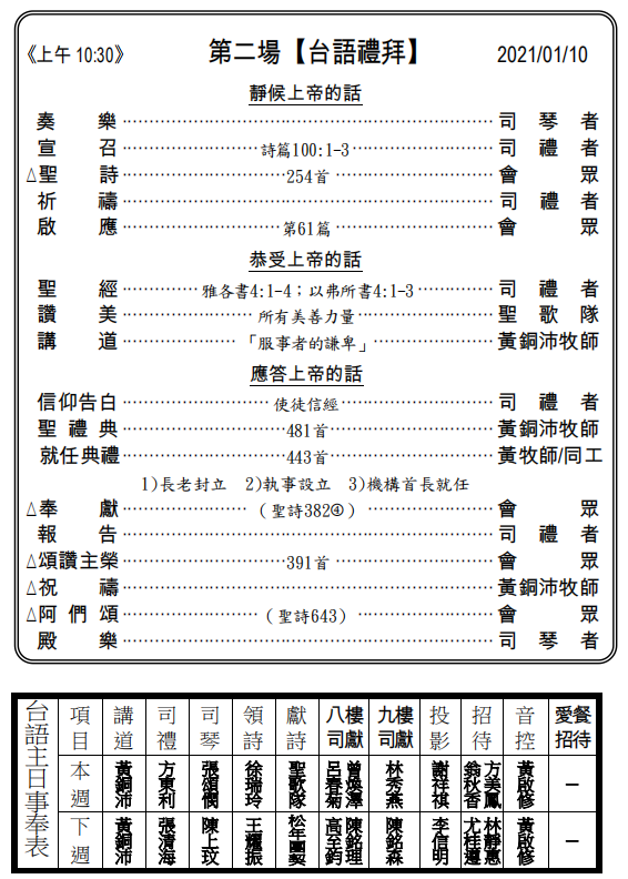 【第二場禮拜】(台語) 上午10:30