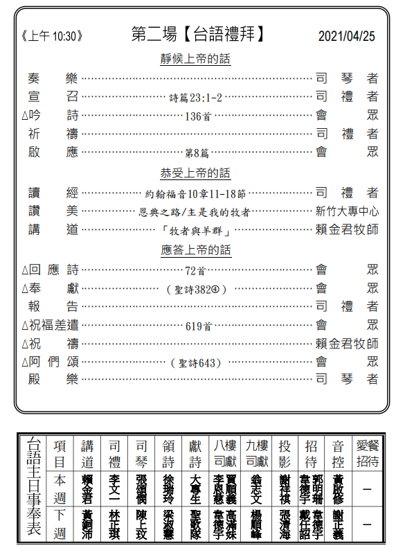 5/16(日)玉山神學院主日 講道者:華語/方東利長老 台語/何智暐傳道