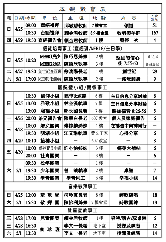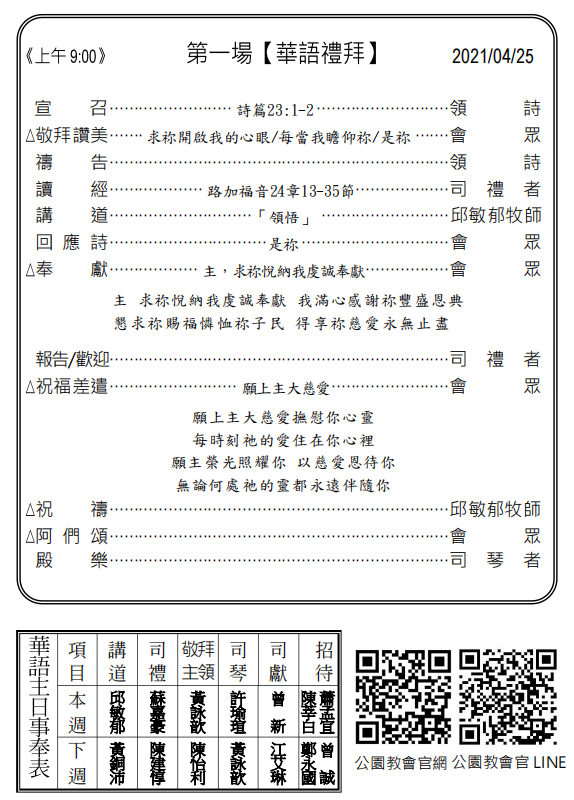 5/30(日)聖靈降臨日培靈主日 講道者:華語/石素英牧師 台語/石素英牧師