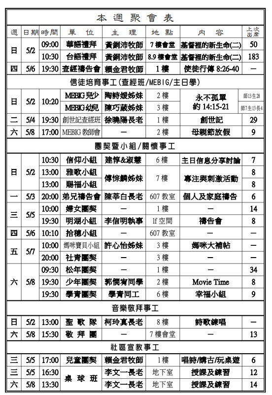 ◎近期主日禮拜預告(5月)