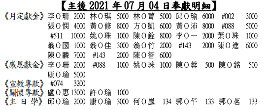 - 轉帳後,請進入教會網站(Line@或官網),點「線上奉獻」表單區,填入:姓名、帳號末5碼、金額、奉獻對象或用途,以便財務組確認奉獻者。