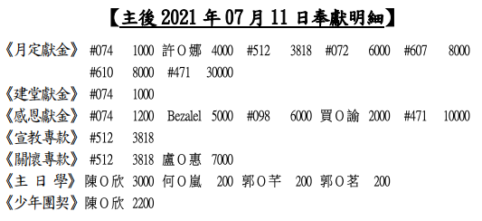- 轉帳後,請進入教會網站(Line@或官網),點「線上奉獻」表單區,填入:姓名、帳號末5碼、金額、奉獻對象或用途,以便財務組確認奉獻者。
