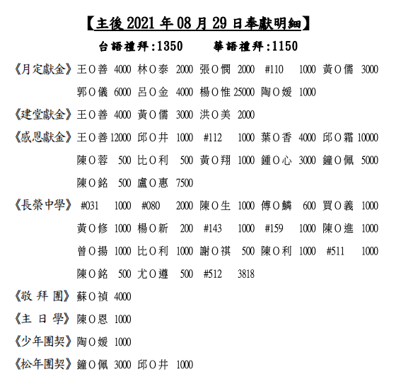- 轉帳後,請進入教會網站(Line@或官網),點「線上奉獻」表單區,填入:姓名、帳號末5碼、金額、奉獻對象或用途,以便財務組確認奉獻者。
