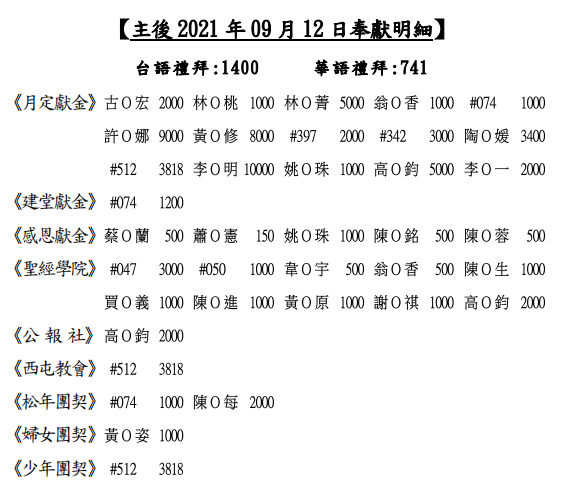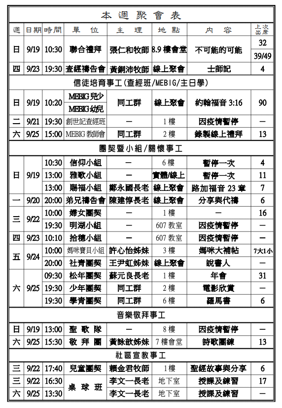 2.各級學校依序開學,本會多位青年遠行就學或就業,求上帝保守賜福。