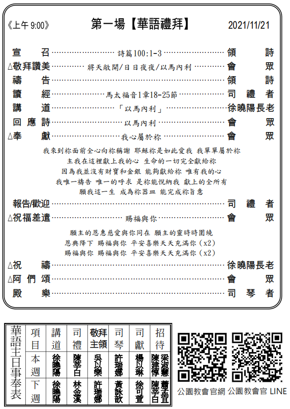 Posted on 2021 11 月 21, 證道: 徐曉陽長老/黃銅沛牧師