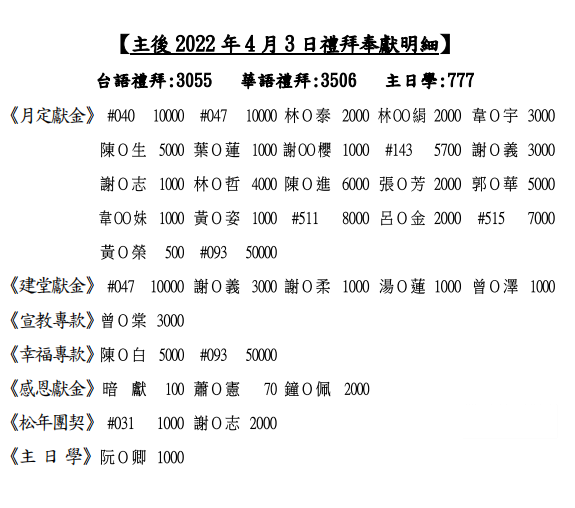 3. 幸福小組福音事工3月起開始實施,請兄姊為本項事工專案奉獻。