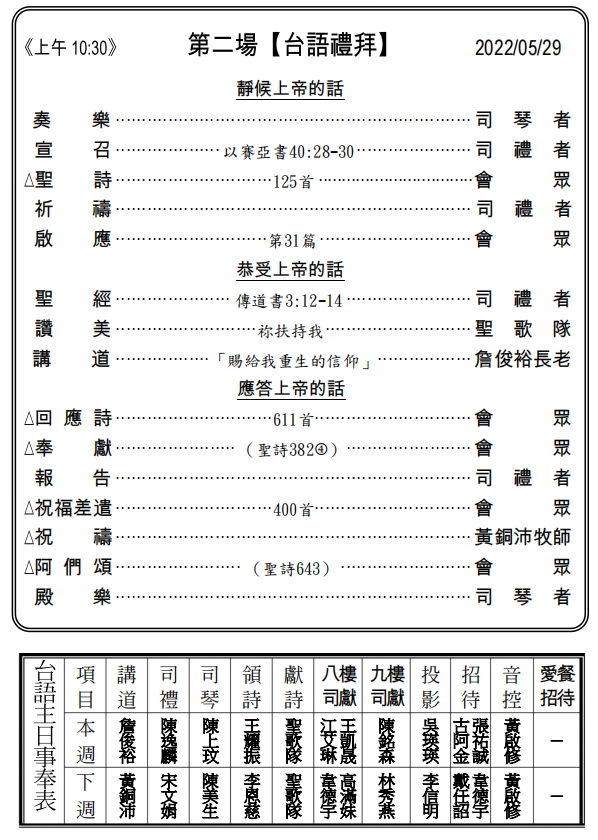 【第二場禮拜】(台語)上午10:30
