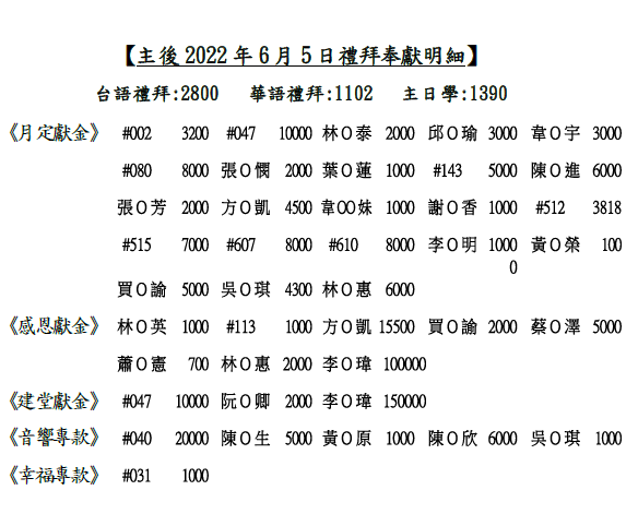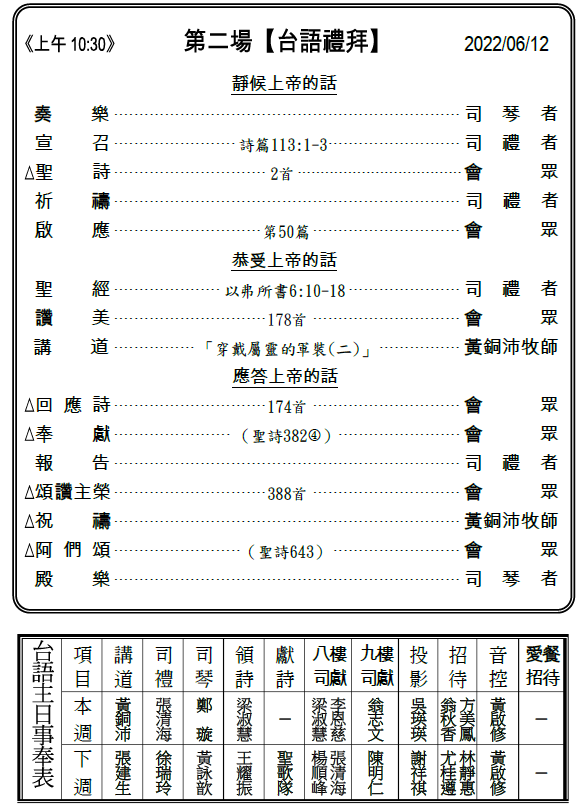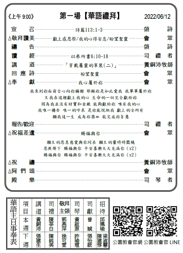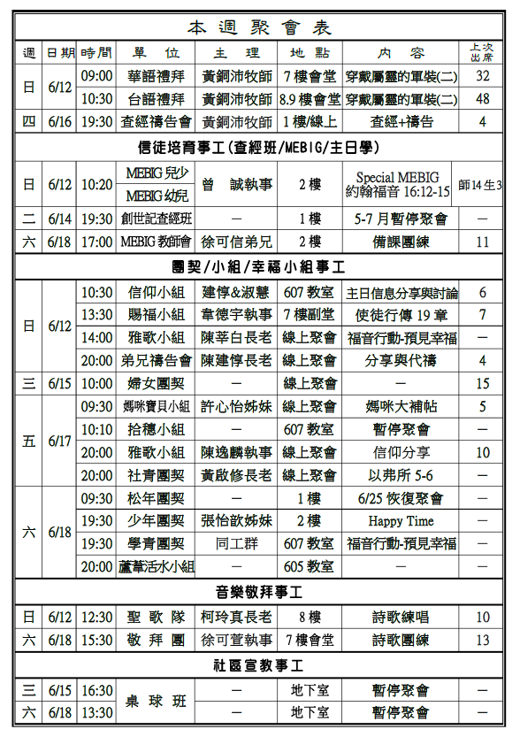 1.柳雅青弟兄6/10安息主懷,願上帝安慰遺族,治喪會議決議各場次禮拜