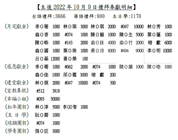若有任何疏漏,請向小會書記黃啟修長老或黃牧師提出補正之。