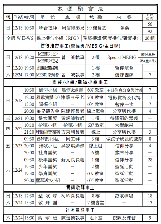 12/25(日)上午10:00救主聖誕讃美禮拝