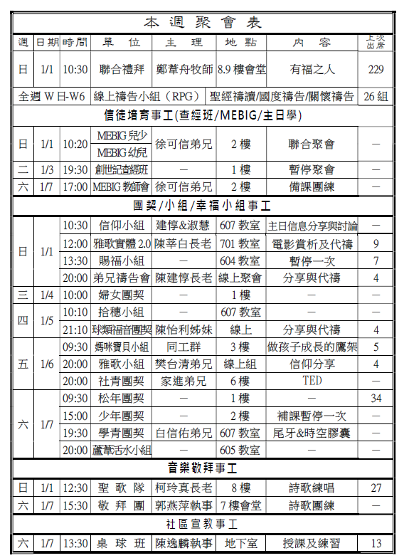 機構/聖歌隊-李恩慈、敬拜團-蘇乃禎、主日學-林金溪。