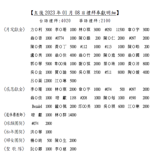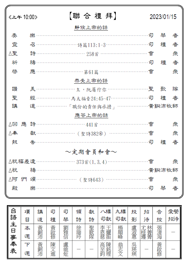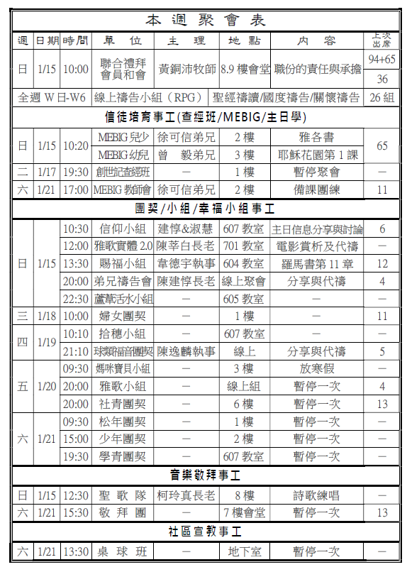 機構/聖歌隊-李恩慈、敬拜團-蘇乃禎、MEBIG主日學-林金溪。
