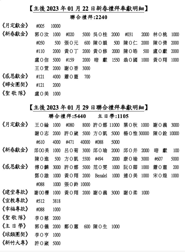 2) 本會小會決議:本主日以奉獻支持樂依姊妹宣教事工。(週報夾奉獻袋)