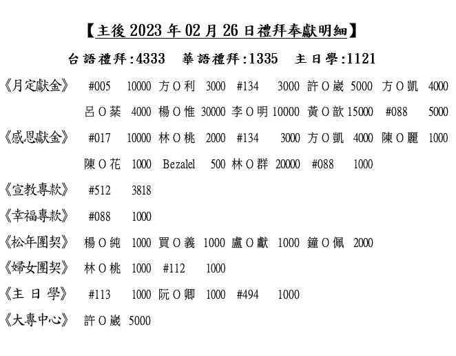 (自由奉獻,奉獻所得扣除費用後作本會宣教專款用。)