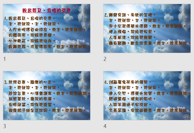 宣召=以賽亞書55:6-7     啟應=第49篇     聖詩=538, 585, 402