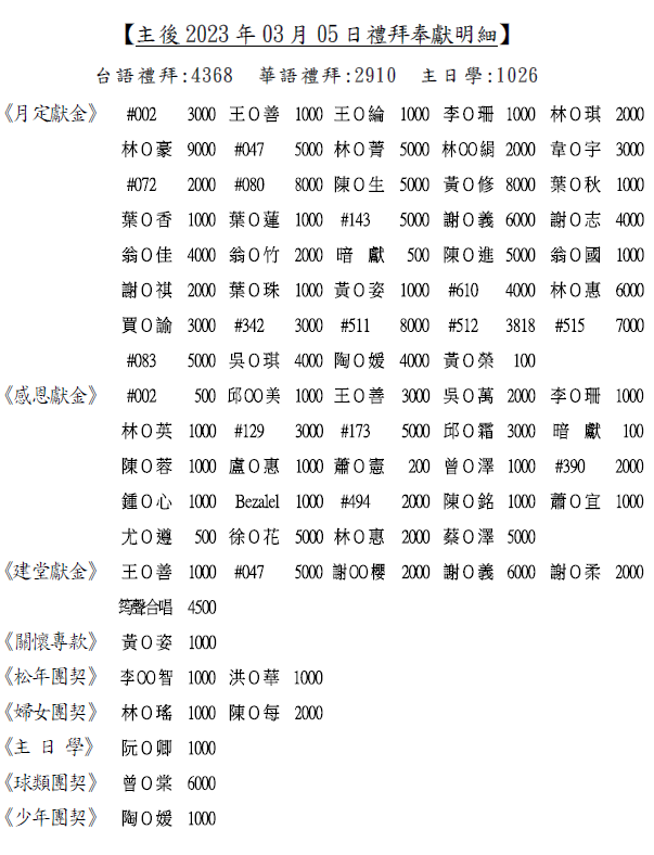 (自由奉獻,奉獻所得扣除費用後作本會宣教專款用。)
