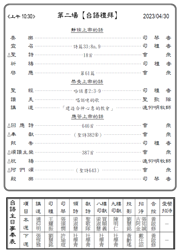 【第二場禮拜】(台語)上午10:30