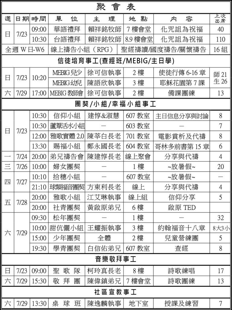 聚會時間表: