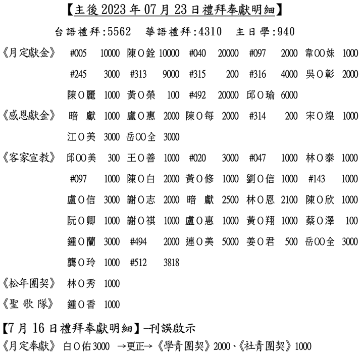 - 北部大會訂8/7-8於花蓮煙波飯店舉辦北部四中會(東部、七星、台北、新竹)幹部同工共識營。