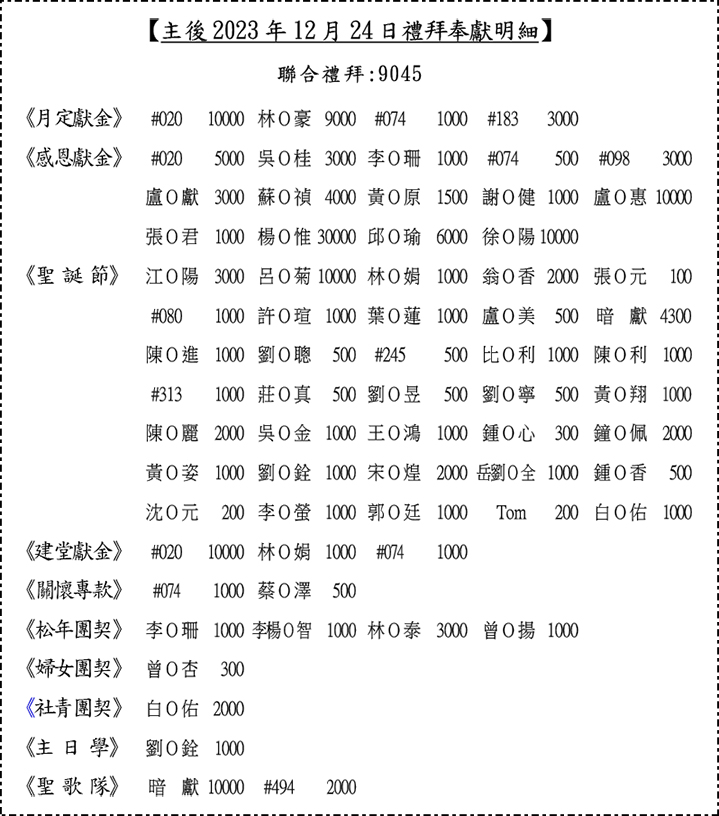 奉獻明細: