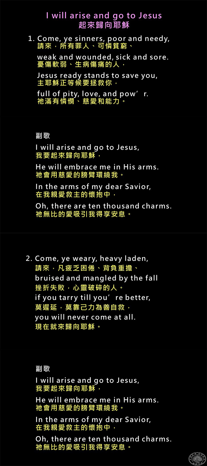 詩歌 : I will arise and go to Jesus