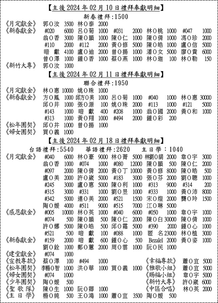 奉獻明細: