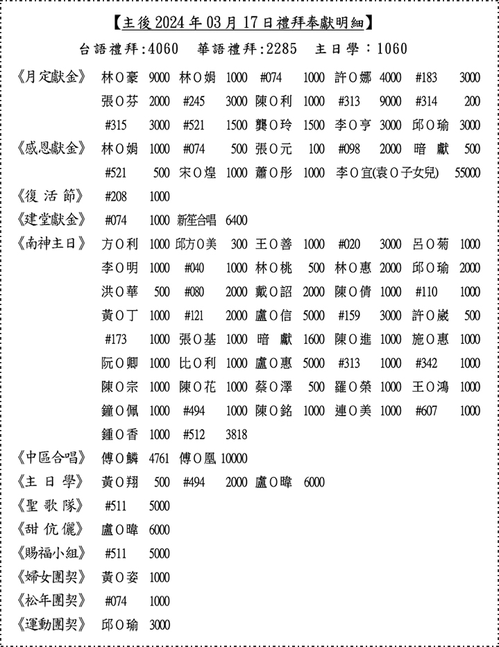 奉獻明細: