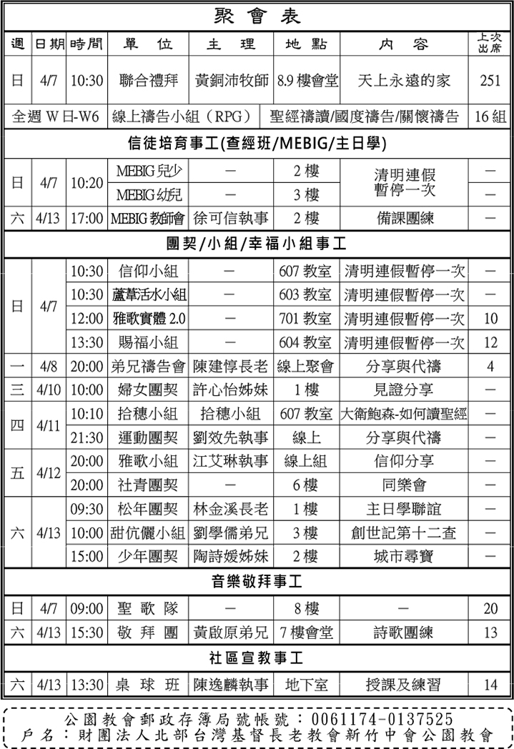 4/28(日) 兩堂禮拜 講道者/賴祥銘牧師