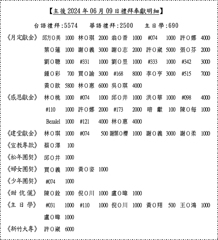 3)預定8/11(日)下午3:00舉行就任感恩禮拜,請兄姊撥冗參加盛會。