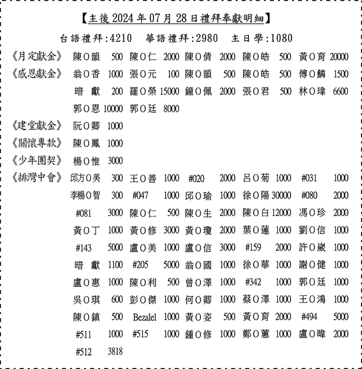 - 七樓副堂更新採購部分音響設備,預算13萬元,請兄姊為音響專案奉獻。