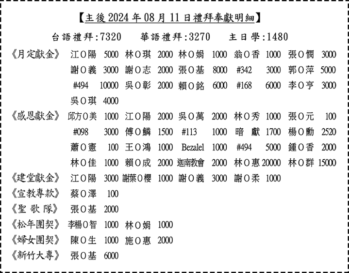 ※本主日(8/18)黃牧師受邀至台北明德教會講道,下午主理長執訓練。