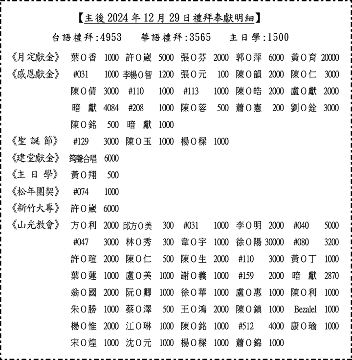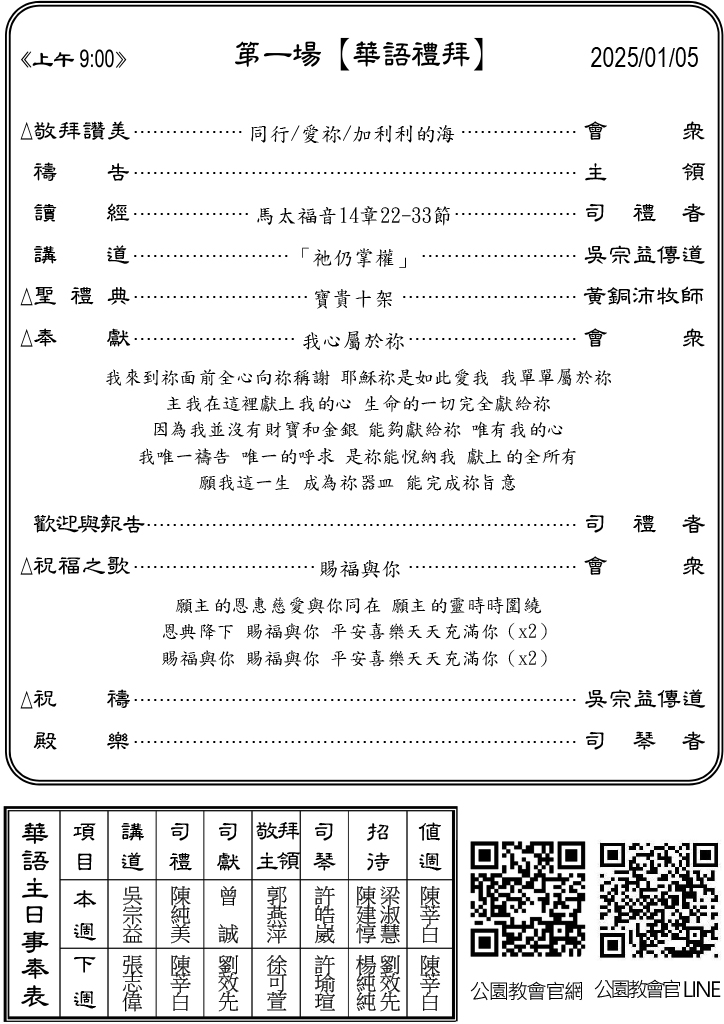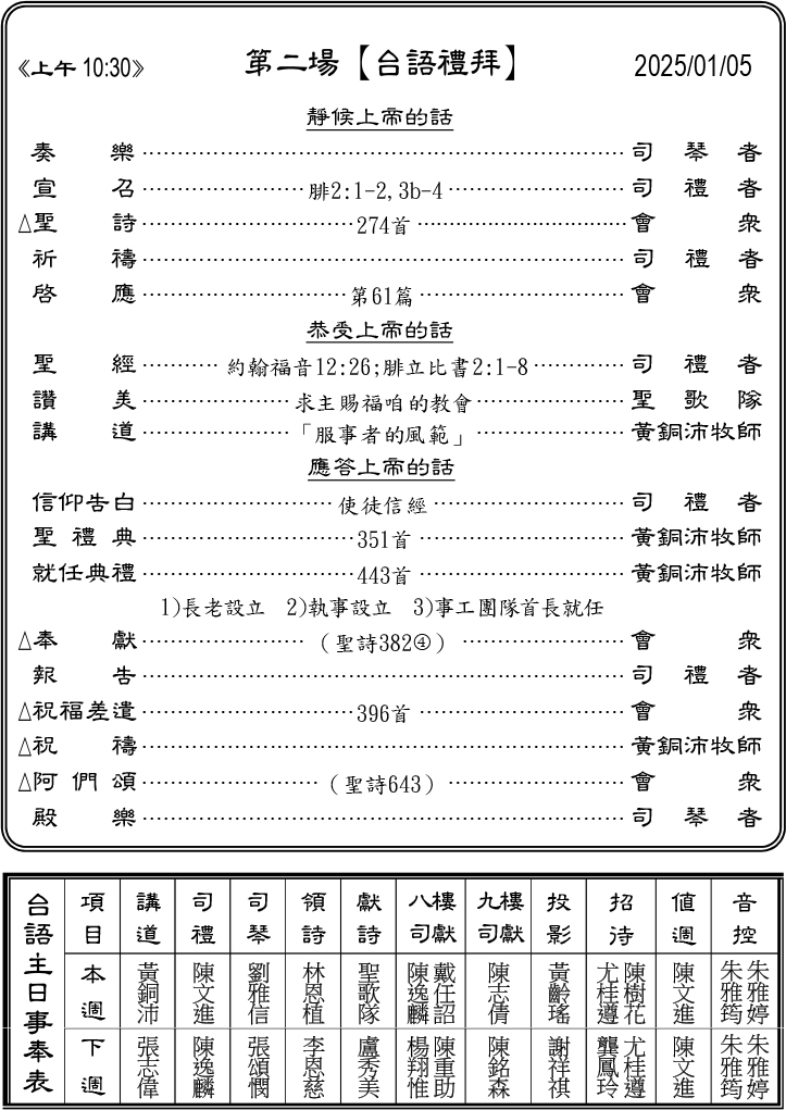 下週主日兩堂禮拜預告(1月12日) ※2024年台神奉獻主日延至本週